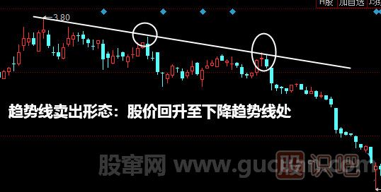 趨勢線賣出形態(tài):股價跌破上升趨勢線形態(tài)K線圖解