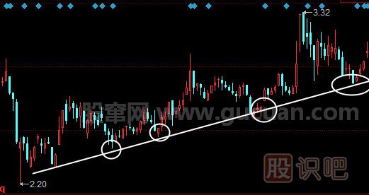 在上漲行情中,如果股價在回調(diào)過程中回調(diào)至上升趨勢線位置時,預(yù)示著股價