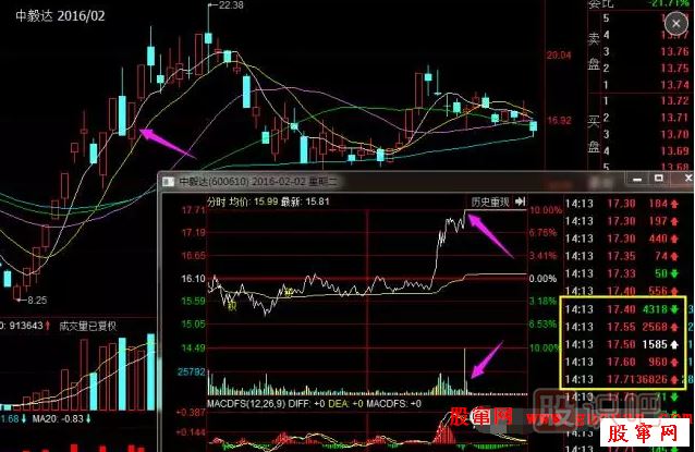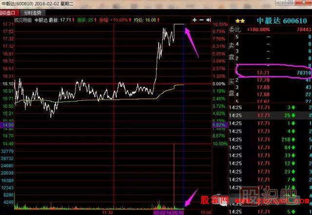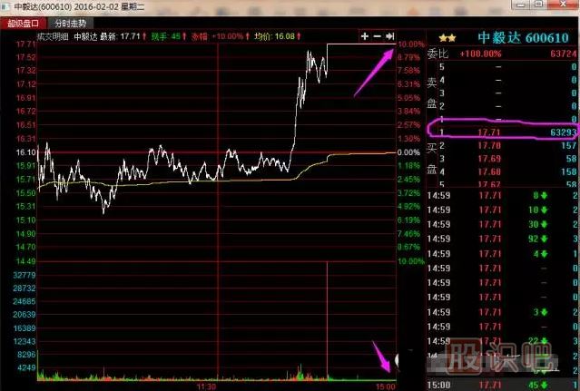 下面以中毅達(dá)2016年2月2日的盤口信息為例,來一起看看趙老哥是怎么封板、加單、出貨的。
