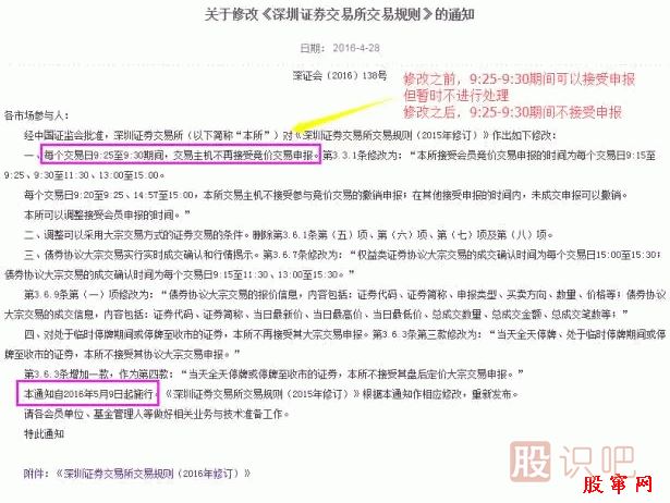 深交所4月28號發(fā)布公告更改交易規(guī)則,從5月9日開始正式實施生效,我們就根據(jù)最新的交易規(guī)則來講講集合競價中一些小技巧,了解下大資金出貨的假單究竟是怎么回事兒。