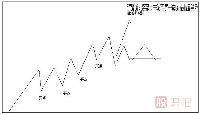 1,不參與盤整和下跌,除非后面又出現(xiàn)符合上漲形態(tài)標準的走勢,再參與進去。
