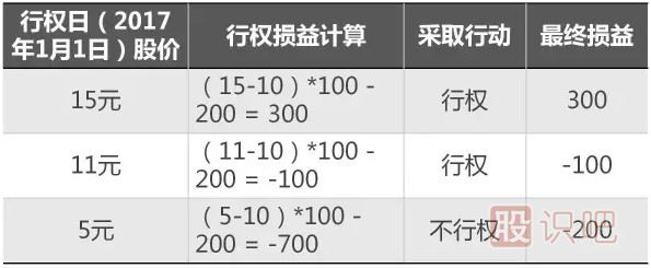 假設(shè)2016年1月1日,老王花了200元期權(quán)費,買下一份“看漲期權(quán)”合約,該合約規(guī)定,老王2017年1月1日,允許以10塊錢每股的行權(quán)價格買入100股“XX股份”的股票。