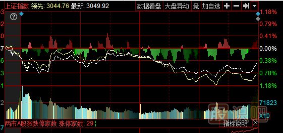 參考白黃二曲線的相互位置可知:A)當(dāng)大盤指數(shù)上漲時(shí),黃線在白線之上,表示流通盤較小的股票漲幅較大;反之,黃線在白線之下,說明盤小的股票漲幅落后大盤股。B)當(dāng)大盤指數(shù)下跌時(shí),黃線在白線之上,表示流通盤較小的股票跌幅小于盤大的股票;反之,盤小的股票跌幅大于盤大的股票。