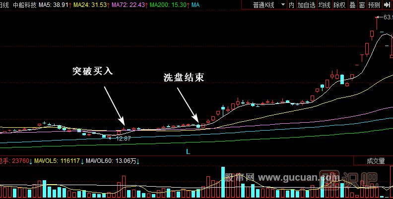 中船股份(600072)該股是黑馬股之一。在5.30暴跌過后,其均線系統(tǒng)形成了一個粘合在一起,然后發(fā)散向上的多頭排列。均線的推動變成了強烈的買入信號。股價在5日線和72日線附近橫盤在一起向上,回抽生命線之后就啟動了,這個時候就是賺錢機會,大膽買入就可以獲得利潤。股價從18元附近快速拉到28元,開始構(gòu)筑一個平臺,經(jīng)過一段時間的橫盤再次發(fā)力向上,突破30元平臺,之后連續(xù)狂飆,迅速翻倍到達63.97元。從12.87元上漲到63.97元只用了不到三個月的時間,這種快速漲4倍的股票并不多。我們要研究那些多數(shù)人沒有看到,但是主力又非常有資金實力又有魄力的,這樣的股票通常會成為超級黑馬股。牛市的大盤狀態(tài)是主力炮制翻倍黑馬的重要環(huán)境。一般股票上漲太快,很多人不敢買入。當人們認為一定會到100元以上的時候,該股卻出現(xiàn)瘋狂地出貨。該買的時候害怕再跌就錯過了買入機會,上漲的時候就盲目信心膨脹,因為貪婪又錯過了賣出的機會。