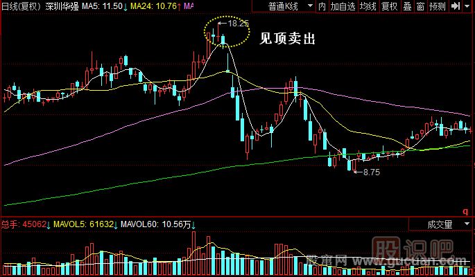 深圳華強(qiáng)(000062)該股是深圳板塊活躍股之一,在不斷上漲之后出現(xiàn)了高位“十字星”信號(hào)。一旦堅(jiān)定將出現(xiàn)洶涌的賣盤,一定要在跳水之前回避風(fēng)險(xiǎn)。如果主力出貨比較順利就會(huì)快速下跌,如果主力不是很好出貨就會(huì)反復(fù)震蕩下跌,通過做反彈雙重頭部的形式不斷賣出籌碼。其實(shí),一個(gè)主力如果是底部一路做上來的、賺盡差價(jià)的股票是很難判斷其真實(shí)的成本區(qū)域。因?yàn)樯蠞q時(shí)期的震蕩差價(jià)都被主力賺取了。在不明了的情況下,我們以24日線作為主力的成本區(qū)域。一旦股價(jià)跌破該線,有可能出現(xiàn)逃莊現(xiàn)象,此時(shí)應(yīng)空倉等待。任何一次下跌途中的沖動(dòng)買入都會(huì)給本金的縮水帶來致命的傷害。