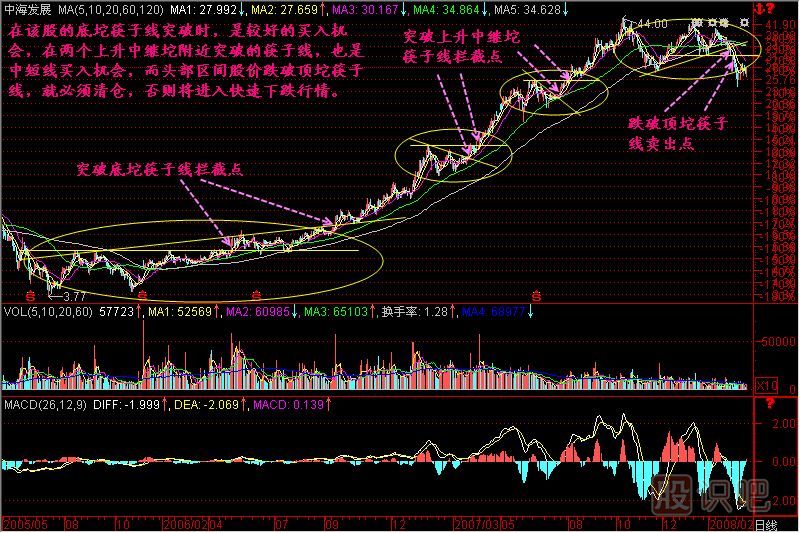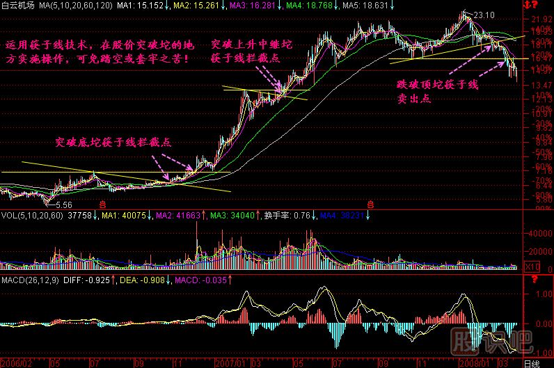 我們都知道坨突破后股價(jià)的運(yùn)行速度會(huì)加快,而筷子線正是為了把握這突破瞬間而產(chǎn)生的,不管是向上突破還是向下突破,只要突破筷子線,就意味著發(fā)出了行動(dòng)信號(hào),突破是你如果不行動(dòng),要么踏空,要么套牢!