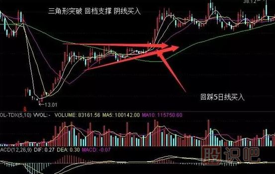 四、三角形突破,回檔支撐,陰線買(mǎi)入