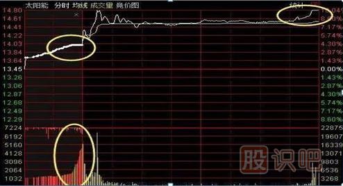 2、在9:20之后成交量逐漸緩慢放大,并且是以紅柱子為主,形成密集的成交量;9:20分鐘前出現(xiàn)漲?;蛘叩?。
