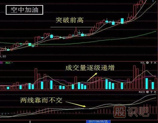 1、“空中加油”是股票走勢的一個(gè)強(qiáng)勢形態(tài);