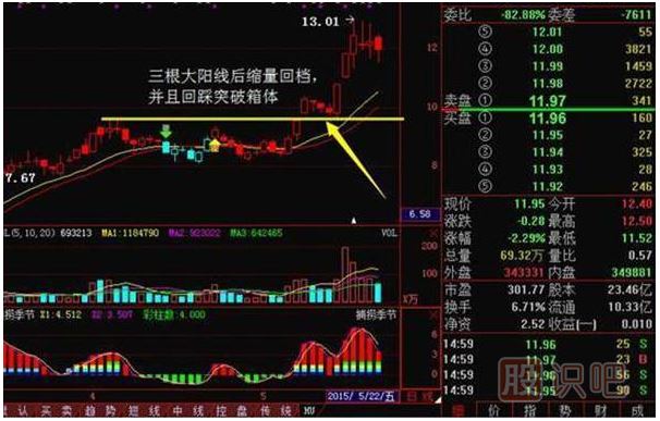 如圖:在5月7日—5月11日三個交易日期間,連續(xù)收了3根大陽線,雖然沒有出現(xiàn)漲停,但也是短線強勢啟動,并且突破了前期高位橫盤一個月多點的箱體頂點,然后縮量回調(diào)了3天,開始連續(xù)漲停發(fā)力,短短幾個交易日之內(nèi),漲幅就超過了20%。他的核心邏輯就是上升回檔的縮量回檔與 傳統(tǒng)技術(shù)圖形的突破回踩出現(xiàn)了重疊,因此二者綜合發(fā)力,短線爆發(fā)非常強。