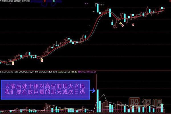 相反,大漲后在相對高位放巨量,不是我們這里說的“頂天立地”,而是賣出信號,一般是階段頂部,短線要及時(shí)拋出!