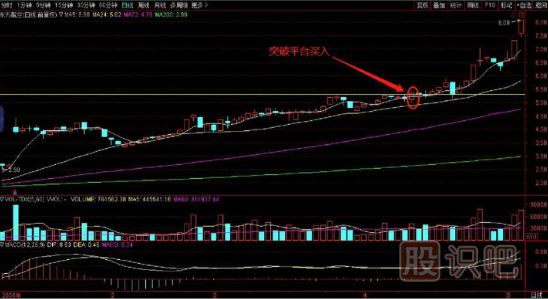 股價在上漲過程中往往會停下來歇歇,消化獲利盤,以減輕上行的壓力,這時股價往往會出現(xiàn)沖高回落或者進行上下震蕩的整理平臺,在股價放量突破前高或者整理平臺時就是短線買點,這時股價會開始新一輪的上漲。