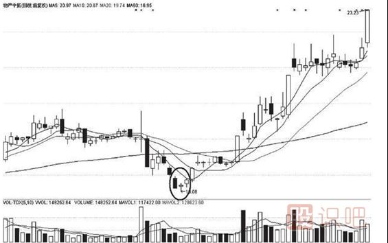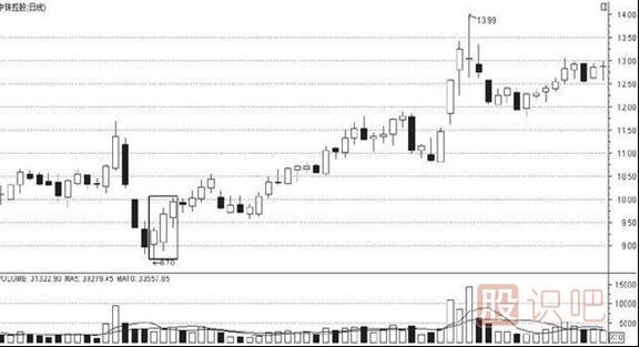 一、底部現(xiàn)陽線反轉(zhuǎn)所謂底部現(xiàn)陽線反轉(zhuǎn),俗稱為早晨之星,其位置主要出現(xiàn)在某只個(gè)股的底部,是一種十分明顯的見底信號(hào)。