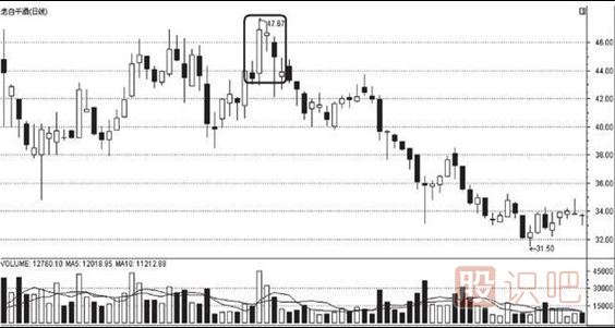 圖2-26 頂部現(xiàn)陰線反轉(zhuǎn)
