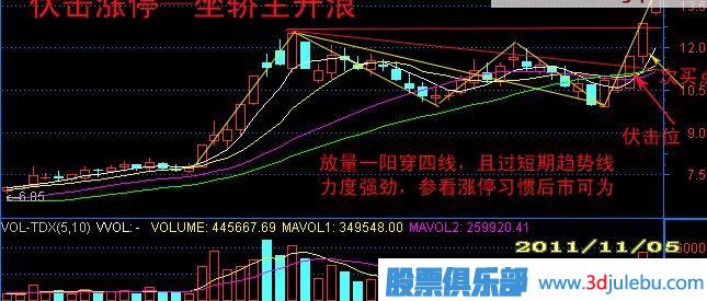 方法是在把握目標(biāo)出現(xiàn)位置的前提下提前一天進(jìn)入伏擊位置等待漲停出現(xiàn)。