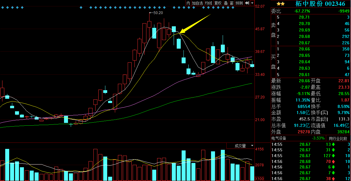 龍頭個股在高位震蕩后,當均線系統(tǒng)形成死叉,股價由震蕩或多頭趨勢轉(zhuǎn)成空頭趨勢,當股價跌破中線趨勢線20日均價線時,相當于給龍頭股判了“死刑”,基本上就宣告行情結(jié)束了,剩下的將是漫長的還債行情,雖然偶爾會有漲短線實戰(zhàn)看盤技巧給妳聊龍頭股短期見頂后常見走勢停表現(xiàn)比較亮眼,但也很難泛起波瀾。