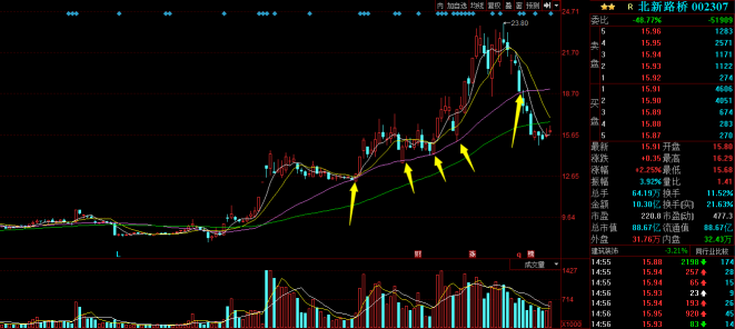 在個股未跌破20日均線錢,或許還有有漲停以及反彈,通常已經(jīng)沒有參與價值了,但當個股跌破20日均線時,理想的狀態(tài)是拒絕接受誘惑更不參與反彈。
