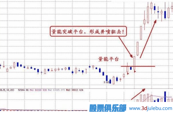 成交量組合底部平臺突破型放量形態(tài):