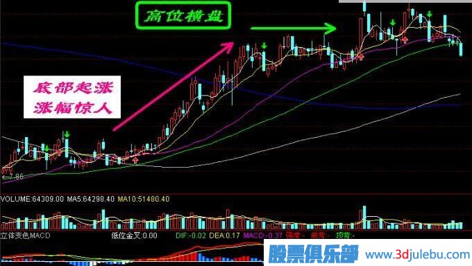 1.從某只個股的日K線圖表上看,自底部算起,這類個股的累計漲幅一般已經(jīng)相當(dāng)大,通常已經(jīng)具有80%左右的獲利幅度。
