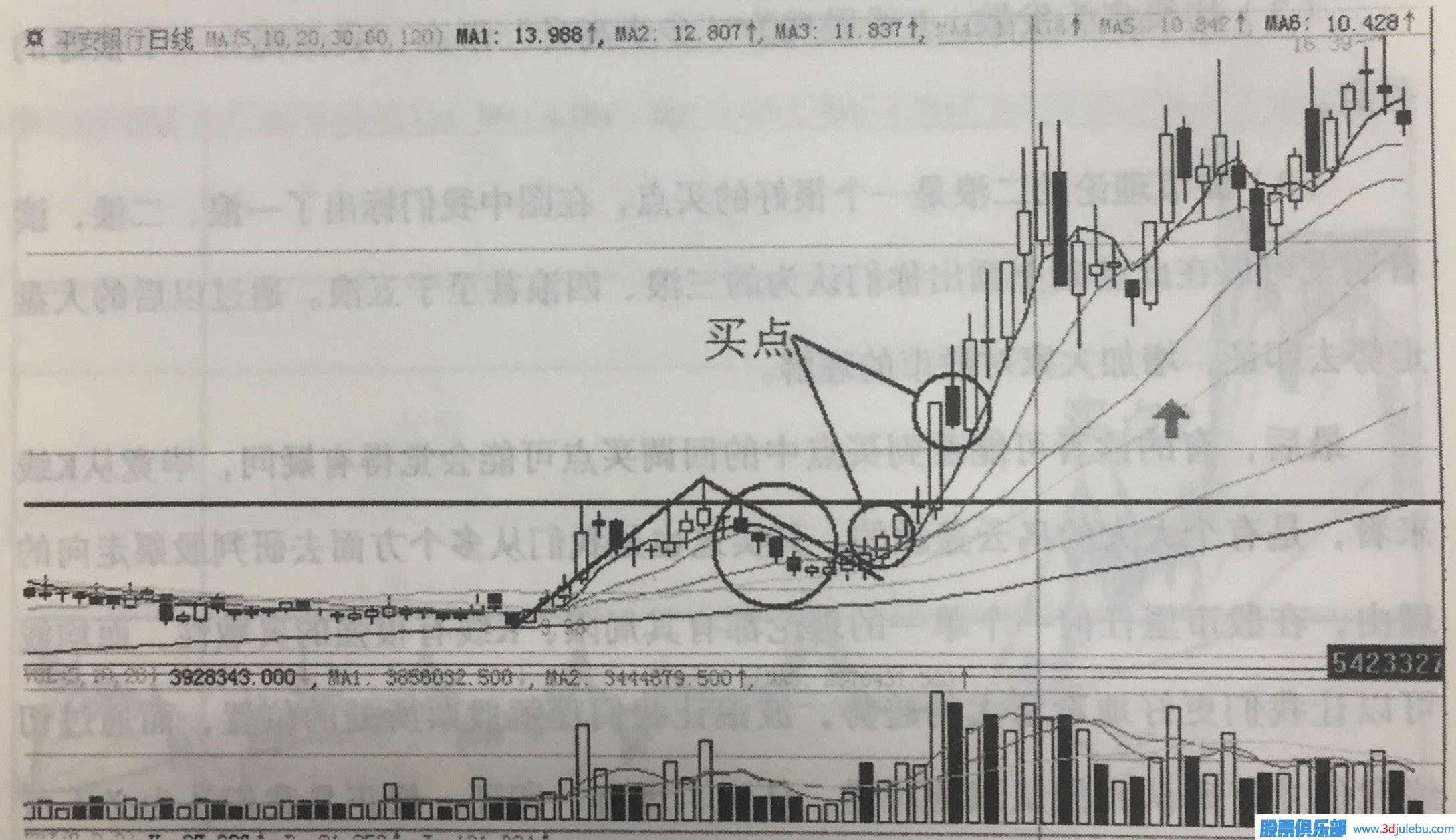 (2)均線多頭發(fā)散,K線展現(xiàn)為“步高升”形態(tài), 我們視為一個(gè)很好的買點(diǎn)。