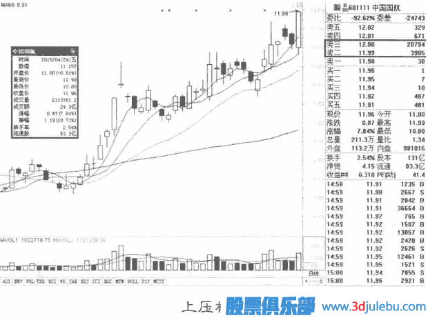 有時(shí)候,主力為了讓股價(jià)按計(jì)劃在一個(gè)狹小的波幅空間里進(jìn)行震蕩,就會(huì)在買、賣盤處分別放上一筆大單,這種上、下都有大單相夾的現(xiàn)象,稱為“夾板”。