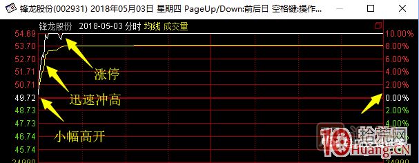 條件:競價小幅高開或平開(最好低于4%),開盤后直接震蕩(震蕩時間2小時左右),調(diào)整后沖擊漲停。對何時漲停沒有限制。
