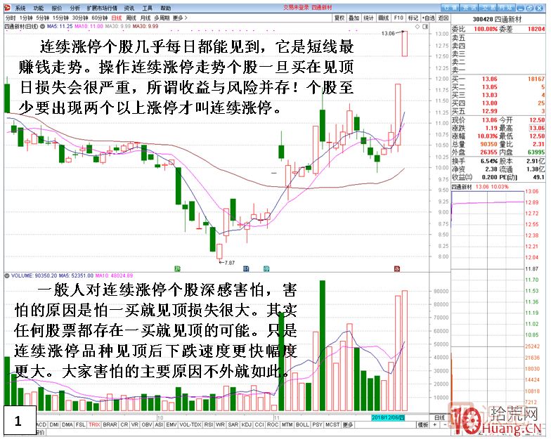 連續(xù)漲停走勢(shì)是短線最賺錢的表現(xiàn),當(dāng)然操作連續(xù)漲停走勢(shì)個(gè)股一旦買在見頂日損失也可能很嚴(yán)重。所謂收益與風(fēng)險(xiǎn)并存,高收 益與高風(fēng)險(xiǎn)同存這存在數(shù)學(xué)邏輯關(guān)系。