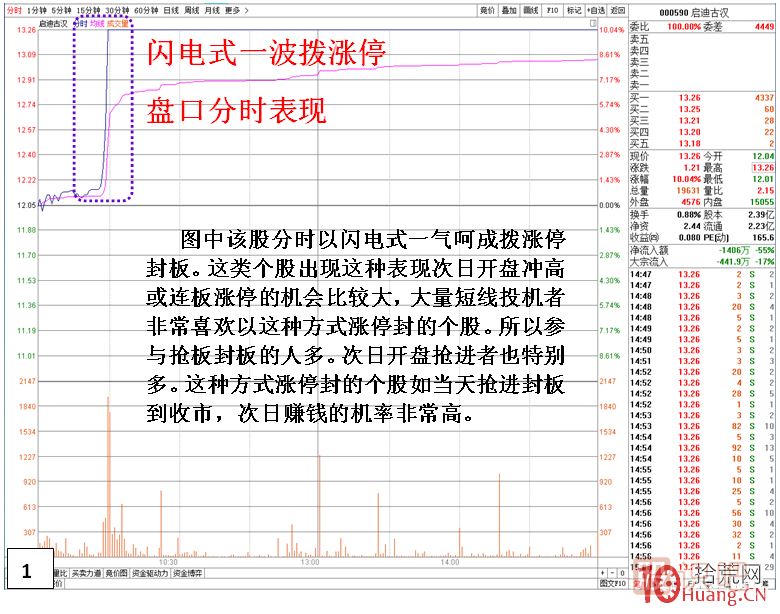閃電式一波漲停的分時走勢