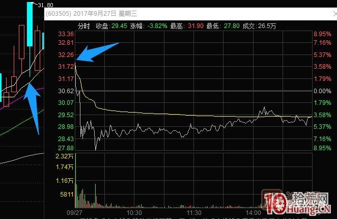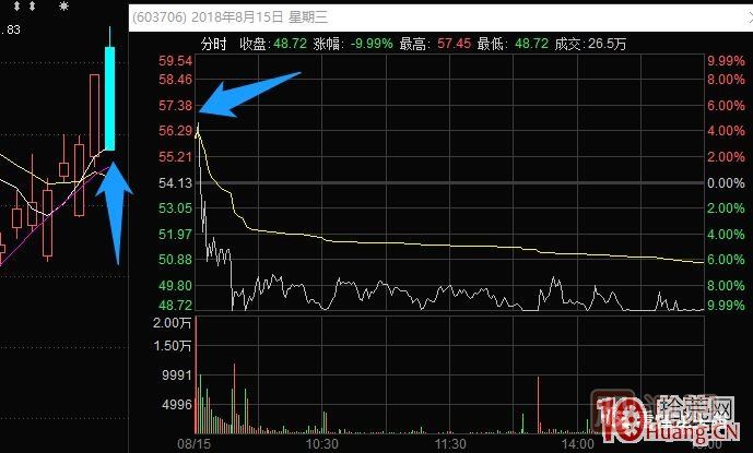 4、前一天強(qiáng)勢(shì)的漲停板,次日開(kāi)盤(pán)分時(shí)出現(xiàn)“力不從心”。