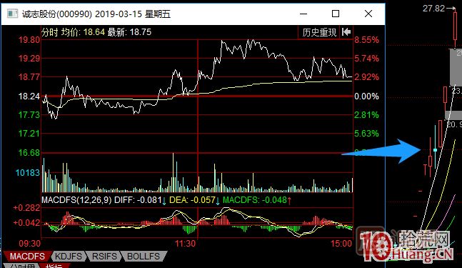 03-15那天,華儀電氣開了一字板,復(fù)旦復(fù)華也快速拉板,科創(chuàng)板爆發(fā)漲停潮,這個時候如果你還沒有上車,可以考慮到前一天和這兩個票并列為4板空間的國電南自和誠志股份。再配合一些技術(shù)盤口,前一天的盤口明顯的國電南自要優(yōu)先于誠志股份,低吸或打板都沒問題。