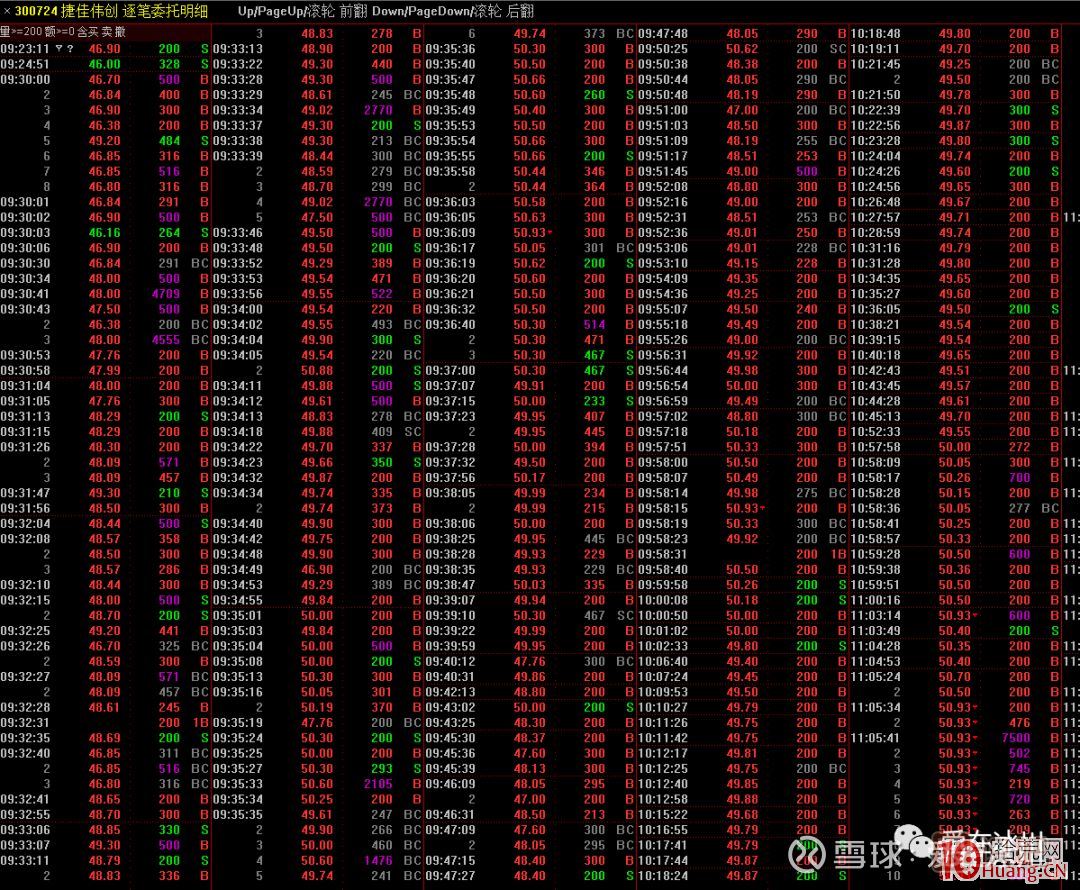 以捷佳偉創(chuàng)為例,來看下那天的捷佳偉創(chuàng)的逐筆委托。