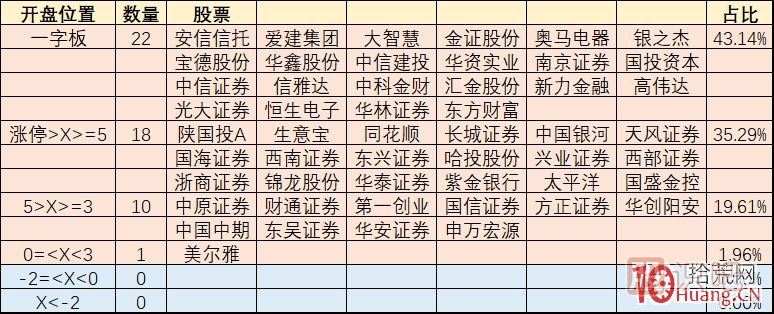 2)一字板的票占比極少,小高開和低開占大頭。