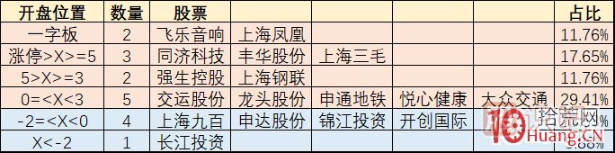 當天板塊共計17個票漲停,開出飛樂音響一個一字板,最先快速上板的是上海鳳凰,其它都是按照時間先后順序上板。