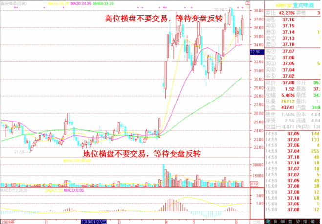 此訣一語(yǔ)道破天機(jī),這最簡(jiǎn)單、最基本的道理,實(shí)為最根本、最有效之。不懂此訣,交易萬(wàn)次,亦不過(guò)股市中的盲 人瞎馬,最終難免一死。未曾摸盤(pán)先必默念一遍,牢記于心。日久天長(zhǎng),養(yǎng)成習(xí)慣,方能百煉成鋼。前兩句好理解,后一句“橫盤(pán)不交易”是權(quán)證操作應(yīng)該格外注意 的,橫盤(pán)時(shí)交易,一旦反向變盤(pán),你必然會(huì)去止損或者追漲,這兩者都是不可取的。橫盤(pán)時(shí)差價(jià)不大,你沒(méi)有耐心,多次交易,勢(shì)必會(huì)造成手續(xù)費(fèi)虧損。