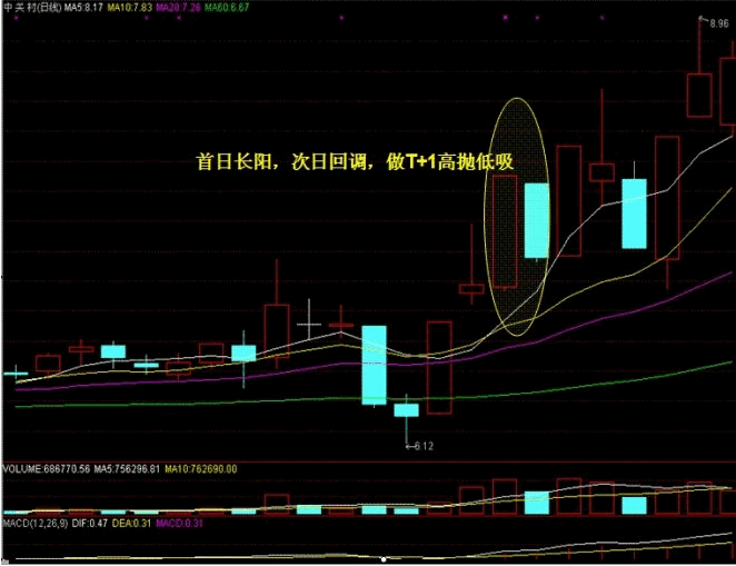 本訣的前半句是說(shuō)首日長(zhǎng)陽(yáng)線收盤(pán)時(shí)是否持倉(cāng)應(yīng)該謹(jǐn)慎對(duì)待。這在訣十四、十五中已經(jīng)詳細(xì)說(shuō)明了。后半句說(shuō)次日的走勢(shì)將會(huì)是大幅震蕩,操作上應(yīng)該以做差為上策,次日早盤(pán)繼續(xù)沖高則賣出,早盤(pán)大幅回調(diào),則堅(jiān)定買(mǎi)入做差。