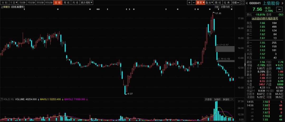 什么是莊股? 其實(shí)市場(chǎng)上很多股票只要是能被莊家完全控盤的都可以叫莊股。 但是夏目說過了,在夏目這里,任何技術(shù)課程都可以講的通俗易懂。 所以,前言也說了,莊股煉成記分3講,對(duì)應(yīng)的自然是3種不同類型而又好識(shí)別的莊股了。 莊股的種類 為了便于大家去識(shí)別這三種莊股,夏目想了一招,就是——管它短中長(zhǎng),只要抓住它的起爆點(diǎn),照樣通吃! 莊股特征 2、拉升過程中分時(shí)走勢(shì)毫無規(guī)律可言,時(shí)而大起大落,時(shí)而走勢(shì)光滑。像下面這種。 很多人以為自己非常了解量?jī)r(jià)齊升,先來看下面這張圖片,讓曾經(jīng)被忽悠過的朋友毀一毀三觀。 這是量?jī)r(jià)齊升,放量突破吧? 有些散戶就會(huì)迫不及待地追進(jìn)去,或者第二天低吸,結(jié)果呢??? 如圖所示 是不是感到很驚訝? 來,直接上栗子! 案例一、上柴股份 是不是很眼熟,在哪里看到過這個(gè)票? 要講的是圖中這一段,先來看一下當(dāng)初的一個(gè)整體的走勢(shì)。 這個(gè)票前面就跌過一波,再是走出了一個(gè)平臺(tái),接著又是一波放量的大跌。 下面這半張圖片,我們看不出主力是在洗盤還是出貨,對(duì)不對(duì)?也不敢去買。 繼續(xù)往下看 注意:這不是我們要去捕捉的行情。但這是我們認(rèn)清它是支莊股的標(biāo)記! 它為什么要放量下跌之后,又放量拉升回來?難道是出貨后又開始進(jìn)貨? 顯然不是的,得不償失!所以,只有一種可能,就是主力在進(jìn)貨。 而且,夏目要告訴大家的是,一般莊家在初期洗盤的時(shí)候,都會(huì)砸個(gè)坑出來,圈內(nèi)叫做黃金坑! 什么叫黃金坑?——莊家為了達(dá)到洗盤的目的而挖的坑。在這個(gè)坑里面只要跳進(jìn)去的,全是要發(fā)財(cái)?shù)?! 所以,看到這里,各位就會(huì)發(fā)現(xiàn)——前面這個(gè)平臺(tái)其實(shí)莊家已經(jīng)開始在拿籌碼了。只是它覺得拿的不夠多,盤子洗的不干凈,想再多洗一點(diǎn)籌碼出來,所以才去砸了個(gè)坑。根據(jù)操盤統(tǒng)計(jì),凡是砸個(gè)大坑出來,莊家能夠多拿很多籌碼,拿多少?這個(gè)數(shù)據(jù)夏目不能透露。大家看量就知道了,肯定有很多人被了洗啊! 再往下看 怎么進(jìn)一步認(rèn)準(zhǔn)這就是一支莊股呢? 各位看上面這張圖,很明顯,莊家在前期的平臺(tái)位附近繼續(xù)震蕩洗盤。圖中長(zhǎng)的兩個(gè)箭頭區(qū)間就是震蕩區(qū)間。 不感到可疑嗎? 好了,到這里,夏目相信,各位已經(jīng)知道了這一定是一支有人在刻意控盤的票了。 短箭頭指的這一天,放量突破平臺(tái)高點(diǎn),莊家正式發(fā)起進(jìn)攻信號(hào)! 這個(gè)時(shí)候,才是夏目真正要提示大家去買入的時(shí)間點(diǎn)!莊家洗了那么久的盤子,我們就等這一刻到來就可以了。不是節(jié)省時(shí)間和提高準(zhǔn)確率了嗎! 而且這個(gè)票,前面集合競(jìng)價(jià)那篇文章里也講過,莊家是怎么提示團(tuán)隊(duì)出貨的,還記得嗎 看完了這支莊股當(dāng)年的這波走勢(shì),大家是不是覺得夏目講解股票是暗藏深機(jī)、環(huán)環(huán)相扣的呢? 其實(shí),夏目在寫這篇文章的過程當(dāng)中,一步一步下來,都是有意圖的,都是為了下一步的講解做鋪墊,這跟操盤是一個(gè)道理。 最后,開始漫漫下跌長(zhǎng)路。。。。。。 這是一種比較好理解的莊股,溫州幫控盤的。大家看它當(dāng)初出貨階段的席位就知道了。 那么可能有朋友會(huì)問,像上柴股份的這種操盤的莊股,是否常見? 請(qǐng)?jiān)賮砜磮D 國(guó)海證券熟悉吧? 夏目前面集合競(jìng)價(jià)那節(jié)技術(shù)課,講到過這支票,是不是也在布一個(gè)局啊? 當(dāng)然,夏目這么做是真心為了大家好,一步一步來講,便于理解! 比如 從幼兒園到小學(xué)初中高中大學(xué)。。。。。每一個(gè)階段都是在為下一個(gè)階段做鋪墊。這句話同樣也是暗藏深機(jī)。 大家都懂這句話的含義,可能你會(huì)在生活中運(yùn)用,但是要運(yùn)用在股市里面,估計(jì)還真沒幾個(gè)人能夠理解! 看下圖,股價(jià)拉回到前期平臺(tái)的時(shí)候,是不是又是3個(gè)板的高度? 那有朋友可能會(huì)問,國(guó)海證券后面不是走了那么一大波嗎?莊家拉了3個(gè)板的高度,出貨了還拉呀? 4月9號(hào)的出貨信號(hào),夏目相信大家肯定是看懂了,那就說明2波3波主力都還在控盤,3波肯定是逐漸開始出貨了,所以4月9號(hào)才會(huì)提示團(tuán)隊(duì)全數(shù)離 我覺得這時(shí)大伙兒了解尋找黃金坑選莊股(圖解)了吧!均線金叉選股公式早已在上述文章為大伙兒開展了解讀,堅(jiān)信諸位看了以后應(yīng)該可以恰當(dāng)掌握了吧,不明白的暫且來資詢小編哦。 網(wǎng)友評(píng)論
