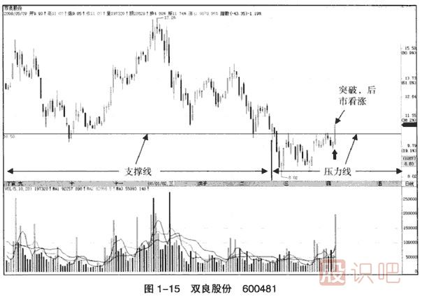 (1)圖1-17是雙良股份的周線圖,箭頭所標(biāo)記的就是圖1一15大陽(yáng)線突破的那個(gè)星期。