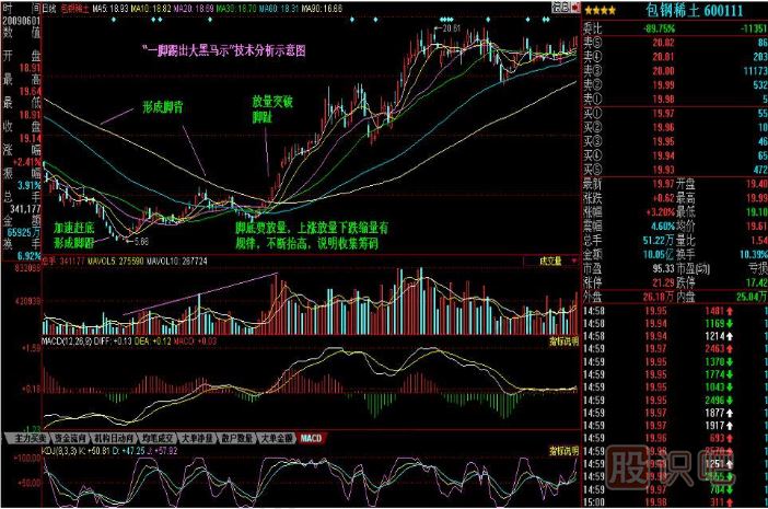 大熊股是漲出來的,大牛股是跌出來的,這一現(xiàn)象往往演繹得更為極端。利用“物極必反,否極泰來”的股市規(guī)律,把握跌出來的大牛股是一大操作技巧。目前許多底部藍(lán)籌股具有“一腳踢出大黑馬一足形底”的獨(dú)特技術(shù)形態(tài),前期重點(diǎn)捕捉推薦的大黑馬包鋼稀土(600111),這是這一技術(shù)的實(shí)戰(zhàn)運(yùn)用,“一腳踢出大黑馬”足形底的形態(tài)要點(diǎn):
