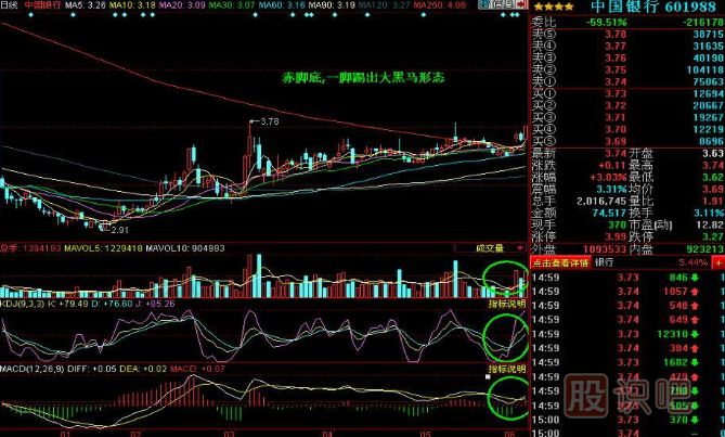 3、KDJ在50附近金叉構(gòu)成金蜘蛛;