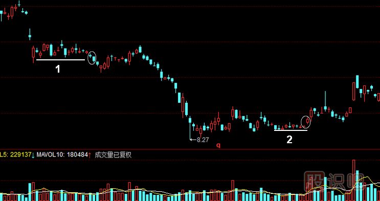 2.平底K線會出現(xiàn)縮量特征,放量的要認真考究,一般放量的很難成為底部。