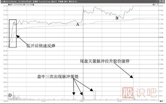 分時(shí)圖上午拉升形態(tài)-盤脈沖放量拉升型: