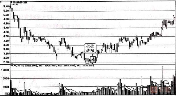 (3)低位連陽出現(xiàn)后并不一定馬上走出反轉(zhuǎn)行情,有時候,股價往往還有最后一跌,是主力為了刻意嚇出恐慌盤的舉動,隨后,股價在正式開始上漲行情。所以,投資者可以乘機在低位分批吸納籌碼,持股待漲,必有獲利。
