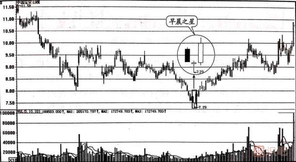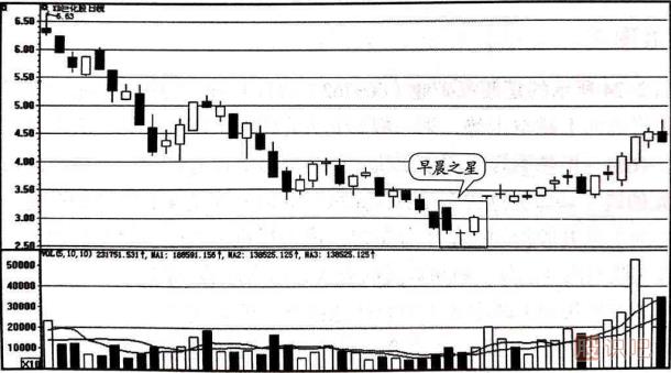 早晨之星是一種非常典型的股價見底信號,如果它出現(xiàn)在股價運(yùn)行下跌趨勢的末期,或者出現(xiàn)在股價暴跌的極大跌幅處,那么它表明股價已經(jīng)見底或是離底部不遠(yuǎn),投資者應(yīng)及時分批適量入場進(jìn)貨。