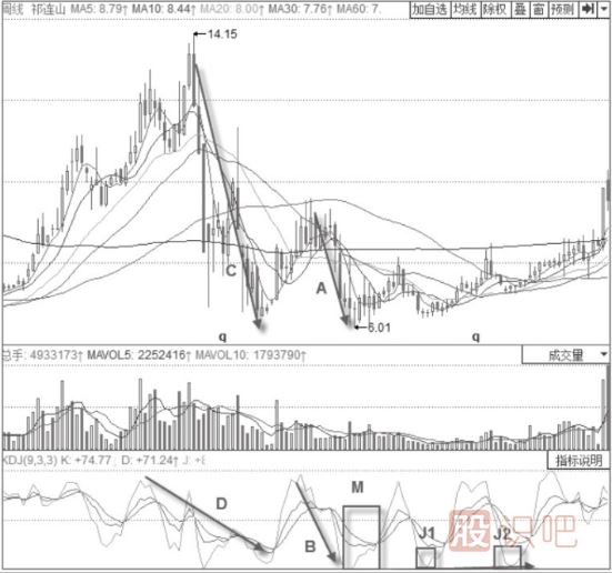 股票技術(shù)形態(tài)分析淺說KDJ指標(biāo)波段操作技巧與策略-月線大波段操作技巧與策略月線大波段操作技巧與策略相對(duì)于其他指標(biāo)而言,KDJ指標(biāo)因上下波動(dòng)較快,所以更適合根據(jù)月線上KDJ指標(biāo)的變化來進(jìn)行較大的波段操...