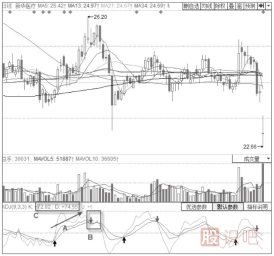 股票技術(shù)分析論文強調(diào)KDJ指標詳解-K線與D線高位平行后的“死叉”