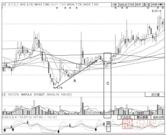 股票技術(shù)分析實例告訴妳短中期均量線的向上發(fā)散形態(tài)介紹